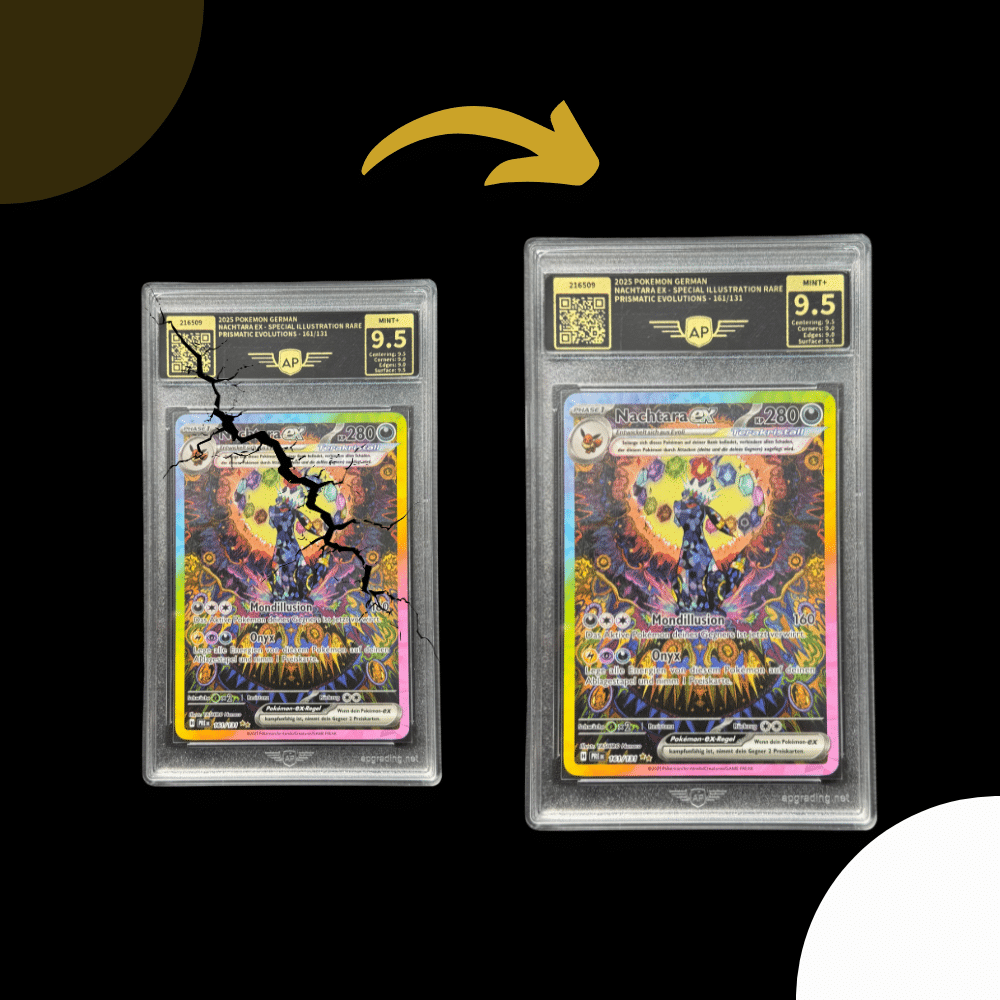 Mit dem neuen Case-Swap-Service tauschen wir das bestehende Case deiner original AP Grading Karte gegen ein brandneues Original-Case aus – ohne den Grade oder die Echtheitsgarantie zu verändern.
